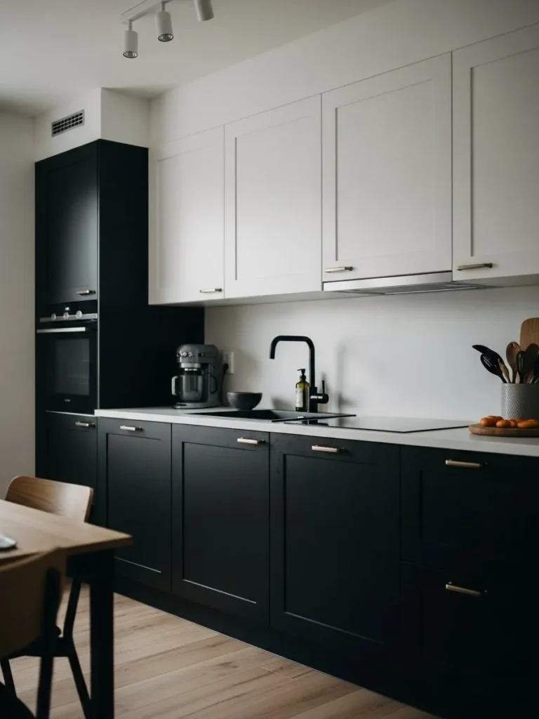 Black and White Cabinets with Cozy Minimalist Warmth