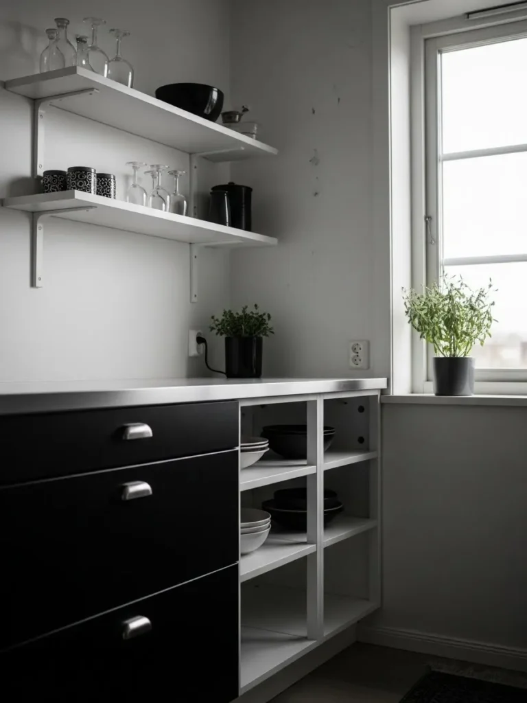 Sleek Minimal Shelving with Bold Black Accents