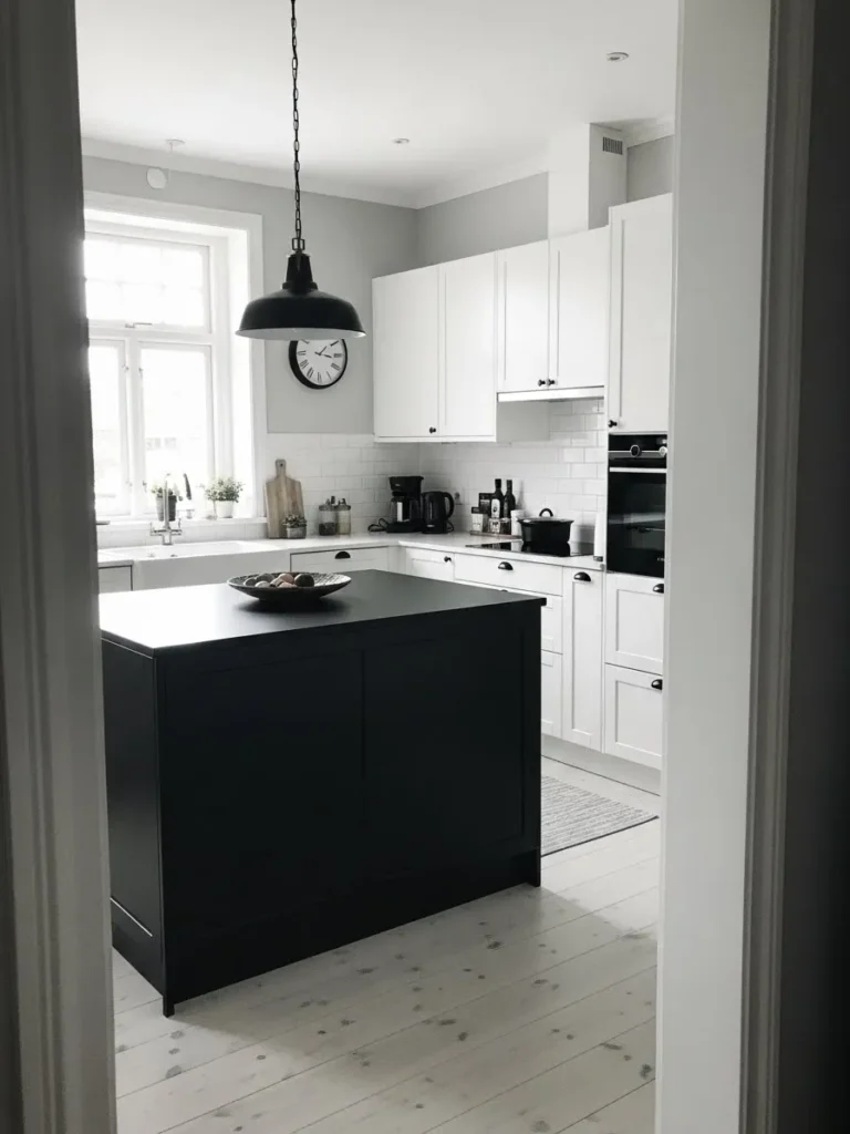 I’m such a fan of this kind of contrast because it creates instant personality without any fuss. The mix of black and white feels strong yet easy to style. I also love how the simple lines make the kitchen feel calm the moment you look at it. It feels like the kind of space where you would actually enjoy starting your morning.