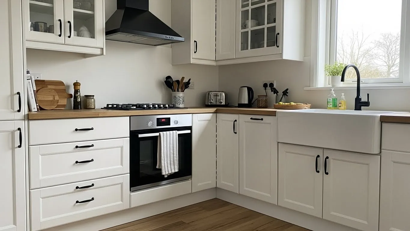 Clean Contrast in a Compact Corner Kitchen