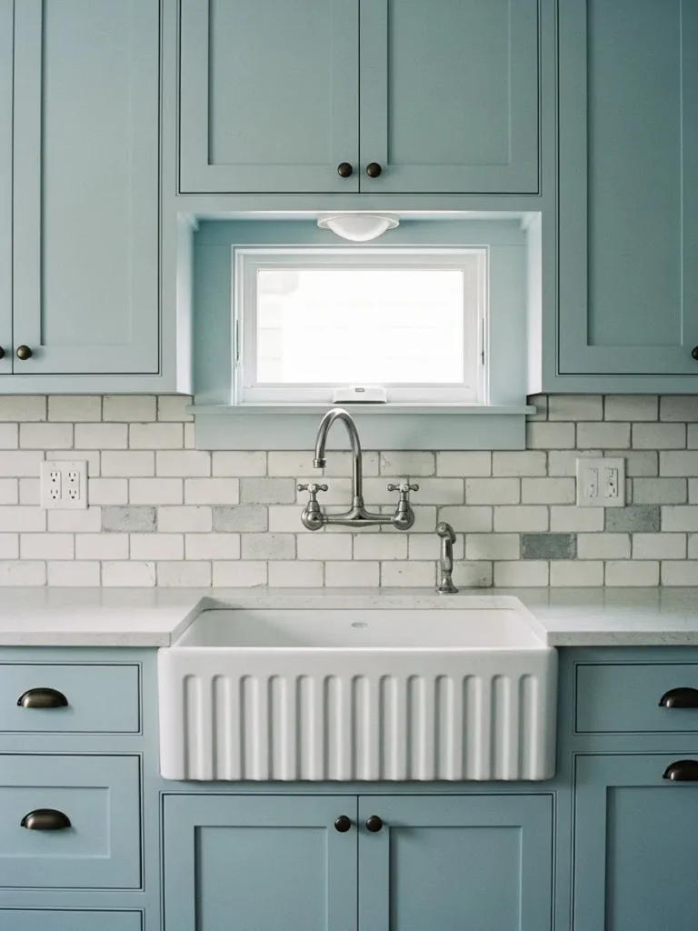 Soft Blue Cabinets with a Charming Farmhouse Sink