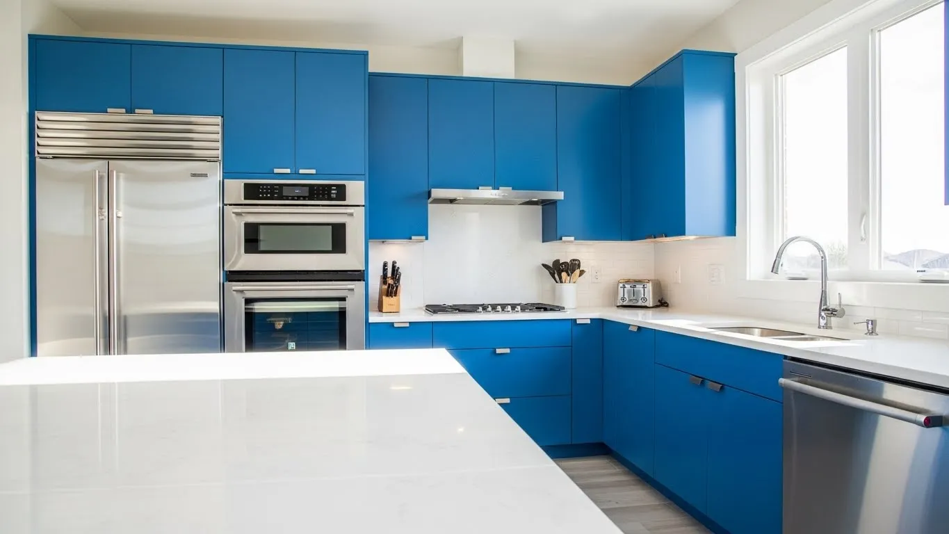 Sleek Blue Minimalist Kitchen Design
