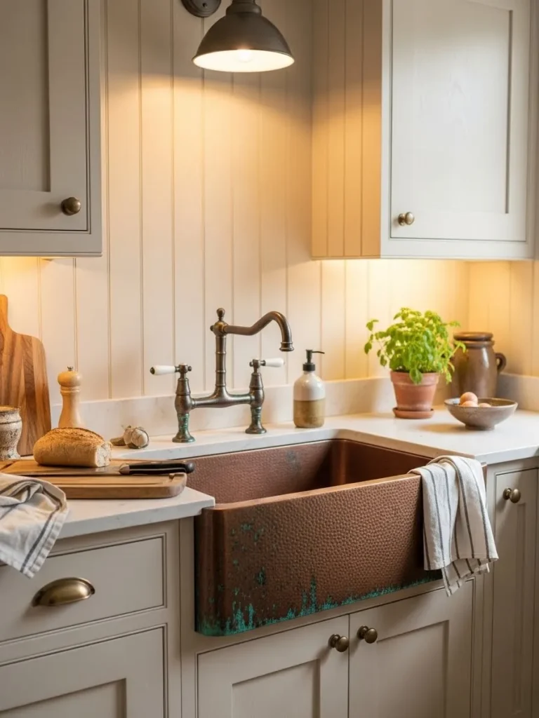 Vintage Charm with a Weathered Copper Sink