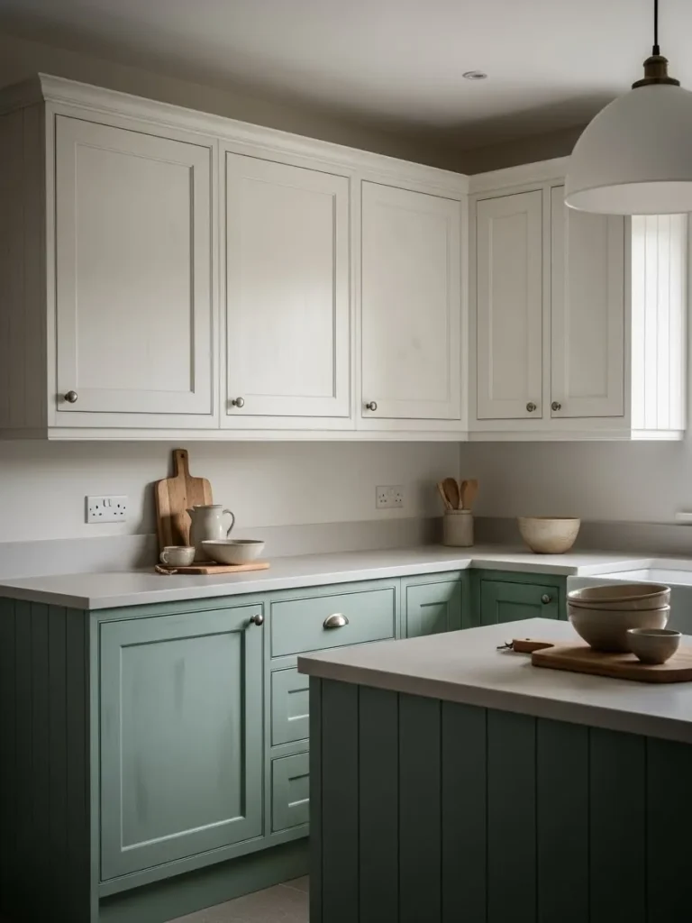 Soft Cream Cabinets Paired With Gentle Green Lower Units