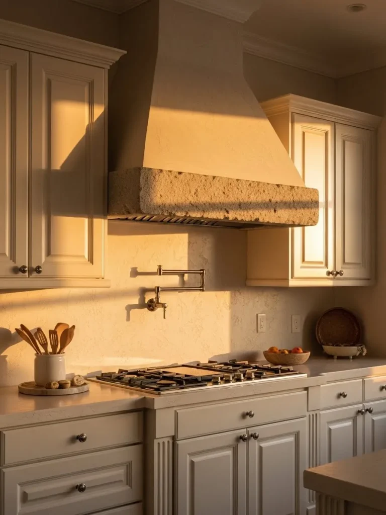 Warm Cream Cabinets in a Soft Golden Glow