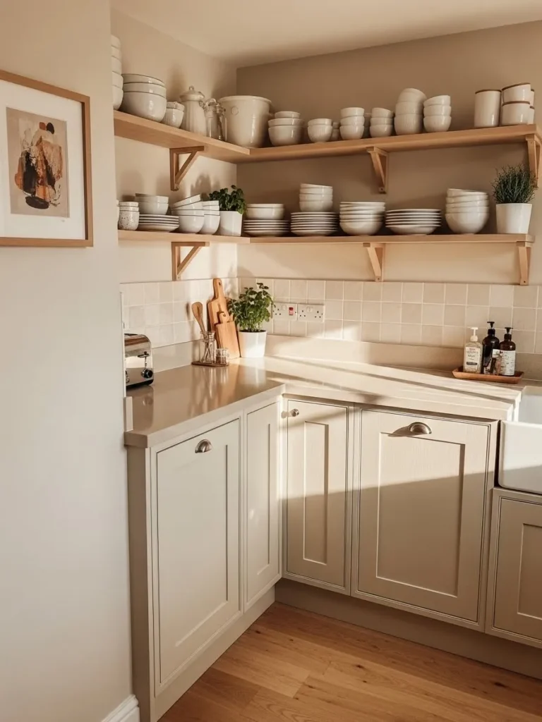 Open Shelf Charm in a Soft Cream Kitchen