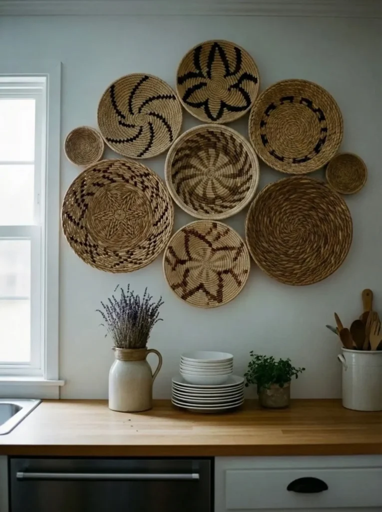 I love how this idea turns something as humble as baskets into a statement moment. It feels warm and inviting in a way that makes you want to slow down and enjoy your kitchen a little more. I always find myself drawn to wall decor that adds character without feeling busy and this hits that sweet spot. It gives the room such a charming lived in vibe and feels like the kind of detail guests always notice and ask about.