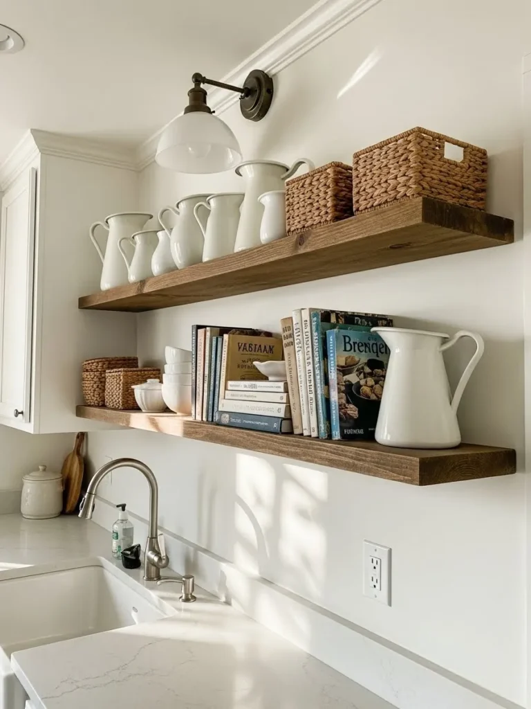 Rustic Floating Shelves with Cozy Farmhouse Charm