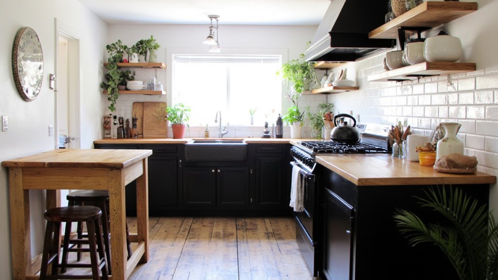 Adding wooden shelves or a butcher block countertop can create inviting focal points. I love the contrast between sleek black cabinetry and rustic wood accents.