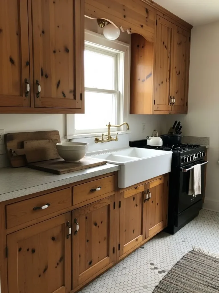 Knotty Pine Cabinets With Vintage Farmhouse Charm